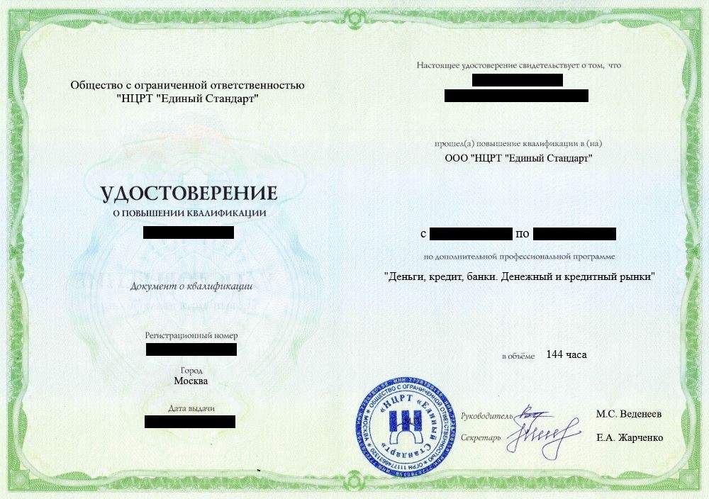 | Курс обучения | Повышение квалификации |
