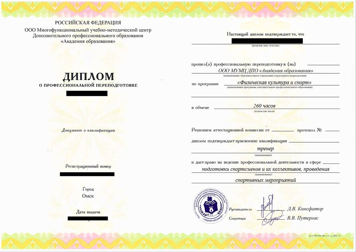 • «Инструктор по спорту», «Инструктор по физической культуре» с правом работы в сфере физической культуры и спорта;