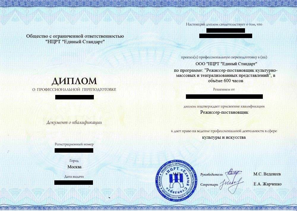 - Диплом о профессиональной переподготовке установленного образца. Срок действия: бессрочно